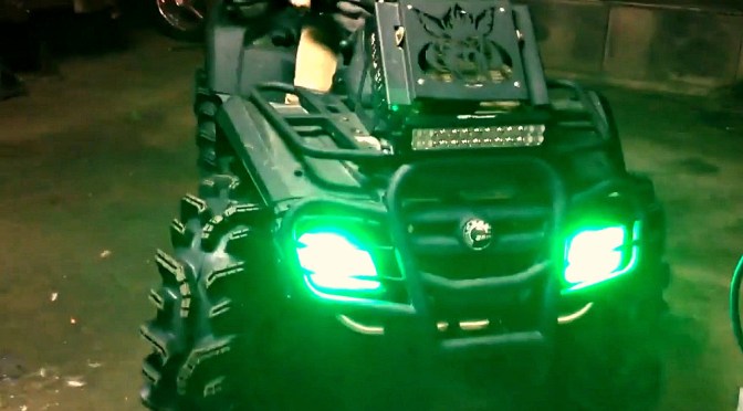 A friend of mine recently finished up a big bore kit and 29″ tire swap on his Can-Am Outlander and couldn’t resist having a little fun in the garage. Hopefully I’ll be able to get some future footage of this nasty quad in action doing what it was built for, DEEP MUD!